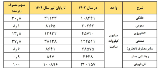 صنایع بزرگترین مصرفکننده برق کشور هستند و از ابتدای سال ۱۴۰۴ تا پایان تیرماه، با مصرف ۳۸ میلیون و ۱۳۸ هزار کیلووات ساعت، معادل ۳۷.۸ درصد از کل برق را به خود اختصاص دادهاند. پس از آن، بخش خانگی با ۳۰.۸ درصد در جایگاه دوم و کشاورزی با ۱۳.۸ درصد در رتبه سوم قرار دارد؛ در حالی که مصارف عمومی، روشنایی معابر و سایر بخشها، مجموعاً ۱۷.۶ درصد از برق کشور را مصرف میکنند.