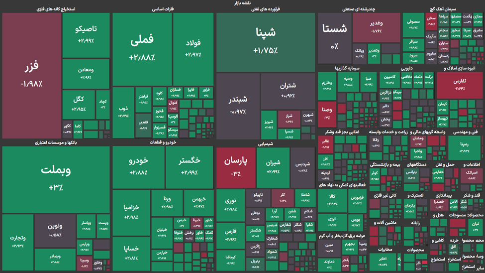 با وجود بیانیه ضدایرانی شورای همکاری خلیج فارس و اتحادیه اروپا، اثر این خبر در برابر موج اخبار حمایتی داخلی خنثی شد. در مجموع، بازار امروز ترکیبی از حمایت رسمی، امید به اصلاح ساختار مالکیت، رشد متعادل قیمت کالاهای جهانی و آرامش نسبی فضای سیاسی را تجربه کرد. در صورت تداوم ورود نقدینگی و ثبات سیاسی، شاخص کل می‌تواند مسیر صعودی خود را تا محدوده مقاومت دو میلیون و ۹۵۰ هزار واحد ادامه دهد.