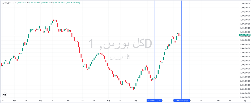 بورس تهران در مهرماه ۱۴۰۴ با موجی از ورود نقدینگی و رشد نمادهای کوچک همراه شد. شاخص کل تا نزدیکی سه‌میلیون واحد بالا رفت و شاخص هم‌وزن رشد سریع‌تری را تجربه کرد؛ نشانه‌ای از بازگشت اعتماد نسبی به بازار.